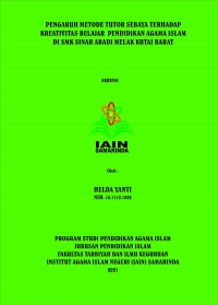 XMLHelda Yanti, 2020. “Pengaruh Metode Tutor Sebaya Terhadap Kreativitas Belajar Siswa Pada Mata Pelajaran Pendidikan Agama Islam di SMK Sinar Abadi Melak Kutai Barat” Skripsi, Jurusan Pendidikan Islam, Fakultas Tarbiyah dan Ilmu Keguruan, Institut Agama Islam Negeri (IAIN) Samarinda. Penelitian ini dibimbing oleh Bapak Drs. Darwis, M.SI selaku pembimbing I dan Bapak Abdul Basith, M.Pd selaku pembimbing II.