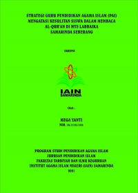 XMLMega Yanti, 2021. NIM 1611101154.Strategi GuruPendidikan Agama Islam (PAI) mengatasi Kesulitan Siswa dalam Membaca Al-Quran di MTs Labbaika Samarinda Seberang. Skripsi. Jurusan Pendidikan Islam. Fakultas Tarbiyah dan Ilmu Keguruan. Institut Agama Islam Negeri (IAIN) Samarinda. Dibimbing oleh Drs. Darwis, M.SI selaku Pembimbing I dan H.Susanto, Lc. M.Pd.I selaku Pembimbing II.