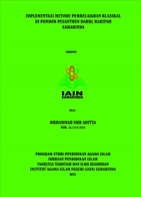 XMLMuhammad Nur Aditya,2021” Implementasi metode pembelajaran klasikal di Pondok pesantren Darul Marifah samarinda” Skripsi, Program studi pendidikan Agama Islam ,Jurusan Pendidikan Islam, Fakultas Tarbiyah dan Ilmu Keguruan, Universitas Islam Negeri (UIN) Samarinda. Penulisan Skripsi ini dibawah bimbingan Prof. Dr. Zurqoni M.Pd, selaku pembimbing I dan Hj. Dwi Nuraini Dahlan M.Pd selaku pembimbing II.