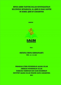 XMLOktavia Erina Kirmaniarti, 2021. “Upaya Guru Tahfidz Dalam Meningkatkan Kecepatan Menghafal Al-Qur’an Bagi Santri di Darul Qur’an Samarinda”. Skripsi ini, Program Studi Pendidikan Agama Islam, Jurusan Pendidikan Islam, Fakultas Tarbiyah dan Ilmu Keguruan, Institut Agama Islam Negeri (IAIN) Samarinda. Skripsi ini ditulis di bawah bimbingan Bapak Dr. Bahrani, M.Pd sebagai pembimbing I dan Ibu Sunanik, M.Pd sebagai pembimbing II.