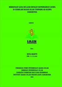 Rina Rianti, 2021. “ Hubungan gaya belajar dengan kepribadian siswa di SDIT Ar-Rajwa Samarinda”. Skripsi, Jurusan Pendidikan Agama Islam, Fakultas Tarbiyah dan Ilmu Keguruan, Institut Agama Islam Negri Samarinda. Penelitian ini dibimbing oleh Dr. Hj. Fathul Jannah, M.SI selaku pembimbing I dan Nurwati, M.Pd selaku pembimbing II.