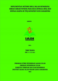 Latar belakang penelitian ini ialah adanya beberapa peserta didik usia dewasa dalam program mengahafal surah-surah pendek di TPQ Jannatun Na’im Samarinda yang tidak ingin mengikuti kegiatan tersebut dikarenakan merasa kesulitan menghafal. Oleh karena itu, peneliti tertarik untuk mendalami dengan melakuan penelitian yang berkaitan dengan implementasi metode drill dalam menghafal surah-surah pendek dan menjabarakan aspek yang menghambat dan juga aspek yang membantu berjalannya implementsi metode tersebut.
