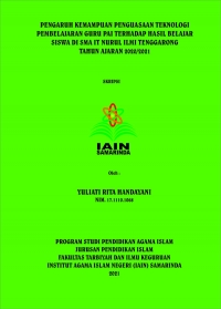 Yuliati Rita Handayani, 2021. “Pengaruh Kemampuan Penguasaan Teknologi Pembelajaran Guru PAI Terhadap Hasil Belajar Siswa di SMA IT Nurul Ilmi Tenggarong Tahun Ajaran 2020/2021. Skripsi, Jurusan Pendidikan Islam Fakultas Tarbiyah dan Ilmu Keguruan Institut Agama Islam Negeri (IAIN) Samarinda”. Penelitian ini dibimbing oleh Drs, Darwis, M.SI dan Fathur Rahman, S.Si., M.Si