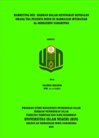Fachrie Ibrahim, 2023 “Marketing MIX / Bauran di meningkatkan kepuasan orang tua peserta didik Madrasah ibtidaiyah Al-Muhajirin Samarinda Samarinda.”. skripsi, Jurusan Pendidikan Islam,Program Studi Manejeman Pendidikan Islam, Fakultas Tarbiyah dan Ilmu Keguruan, Universitas Islam Negeri (UIN) Sultan Aji Muhammad Idris Samarinda. Penelitian ini dibimbing oleh ibu Dr. Siti Julaiha, S.Ag. M.Pd selaku pembimbing I dan ibu Imroh Atul Musfiroh, M.Pd.I. selaku pembimbing II.