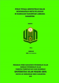 XMLSuryani, 2023 “Peran Tenaga Administrasi dalam Meningkatkan Mutu Pelayanan di Madrasah Tsanawiyah Labbaika Samarinda.” Skirpsi, Program Studi Manajemen Pendidikan Islam (MPI) Jurusan Pendidikan Islam Fakultas Tarbiyah dan Ilmu Keguruan Universitas Islam Negeri Sultan Aji Muhammad Idris Samarinda (UINSI). Penelitian ini dibimbing oleh Ibu Dr. Siti Julaiha, M.Pd sebagai pembimbing I, dan Bapak Misbahul Fuad, M.Pd.I. sebagai pembimbing II.