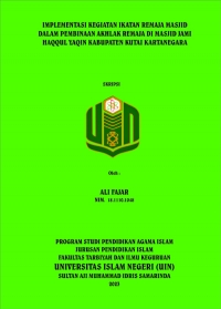 XMLAli Fajar, 2023. “Implementasi Kegiatan IRMAS Dalam Pembinaan Akhlak Remaja Di Masjid Jami Haqqul Yaqin Kabupaten Kutai Kartanegara”. Penelitian ini dibimbing oleh Ibu Mujahidah, M.Si. selaku pembimbing I dan Bapak H. Susanto, M.Pd. selaku pembimbing II.