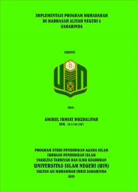 Amirul Jumiat Muzdalifah, 2023. “ Implementasi Program Muhadarah di Madrasah Aliyah Negeri 2 Samarinda”. Skripsi, Program Studi Pendidikan Agama Islam, Fakultas Tarbiyah dan Ilmu Keguruan, Universitas Islam Negeri Sultan Aji Muhammad Idris (UINSI) Samarinda Penelitian ini dibimbing oleh Prof. Dr. Zurqoni. M.Ag dan Dr. H. Akhmad Ramli, M.Pd.