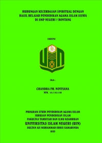 XMLChandra FH. Noviyana. 1811101125. “Hubungan Kecerdasan Spiritual dengan Hasil Belajar Pendidikan Agama Islam pada Siswa Kelas VIII di SMP Negeri 7 Bontang”. Program Studi Pendidikan Agama Islam. Fakultas Tarbiyah dan Ilmu Keguruan Universitas Islam Negeri Sultan Aji Muhammad Idris Samarinda. Penulisan skripsi ini di bawah bimbingan Dra. Etty Nurbayani, M.Pd selaku Pembimbing I dan Fathur Rahman, S.Si, M.Si selaku Pembimbing II.