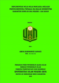 Ghina Rahmawati Jannati, 2023, Implementasi Nilai-Nilai Pancasila Melalui Proyek Bhinneka Tunggal Ika dalam Membentuk Karakter Siswa di SMA Negeri 1 Loa Janan. Skripsi, Program Studi Pendidikan Agama Islam Fakultas Tarbiyah dan Ilmu Keguruan Universitas Islam Negeri Sultan Aji Muhammad Idris Samarinda di bawah bimbingan Bapak Muhammad Iwan Abdi, M.S.I selaku pembimbing I dan Ibu Atika Muliyandari, M.Pd selaku dosen pembimbing II.