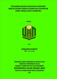Muhammad Hidayat, 2023. “Pengaruh Kegiatan Keagamaan Terhadap Akhlak Peserta Didik di MTs Darul Muta’allimin Samarinda”. Skripsi Program Studi Pendidikan Agama Islam, Jurusan Pendidikan Islam, Fakultas Tarbiyah dan Ilmu Keguruan, Universitas Islam Negeri (UIN) Sultan Aji Muhammad Idris Samarinda. Di bawah bimbingan Harjriana, M.Pd sebagai pembimbing I dan Muthia Umi Setyoningrum, M.Pd sebagai pembimbing II.