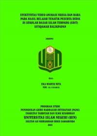 Eka Wahyu Nita, 2023 “Efektivitas Video Animasi Nussa Dan Rara Pada Hasil Belajar Tematik Peserta Didik Kelas 4 Di Sdit Istiqamah Balikpapan”. Program Studi Pendidikan Guru Madrasah Ibtidaiyah. Jurusan Pendidikan Madrasah, Fakultas Tarbiyah dan Ilmu Keguruan, Universitas Islam Negeri Sultan Aji Muhammad Idris Samarinda. Penulisan skripsi ini dibawah bimbingan Bapak Abdul Razak, M.Pd selaku pembimbing I dan Ibu Amalia Nur Aini, M.Pd selaku pembimbing II.