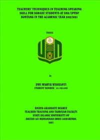 Dwi Wahyu Wijayanti. 2023. “Teachers’ Techniques in Teaching Speaking Skill For X Grade Students at SMA YPVDP Bontang in The Academic Year of 2022/2023” Thesis, English Language Education Study Program, Tarbiyah and Teacher Training Faculty, Sultan Aji Muhammad Idris State Islamic University of Samarinda. This research is under the guidance of Mrs. Dina Destari, S,S., M.Pd as the first advisor, and Mrs. Dra. Sitti Hadijah, M.Pd as the second advisor.