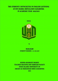 XMLMailisah, 2022. “The Students’ Difficulties in English Listening at MTs. Darul Muta’alimin Samarinda in Academic Year 2022/2023”. Thesis, English Education Department, Teacher Training and Tarbiyah Faculty, State Islamic University (UIN) Sultan Aji Muhammad Idris Samarinda. This research was guided by Mrs. Rostanti Toba, M.Pd as the first supervisor, and Ms. Anis Komariah, M.Pd as the second supervisor.