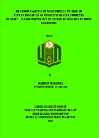 English also becomes very important for people to exchange meaning and represent their feelings and ideas. Learning a foreign language is different from learning one’s mother tongue. The students meet a lot of difficulties in learning a foreign language (the target language / TL). Sometimes the student make some errors in translating Indonesian text into English text. The students still do not master the translation and it is still hard to translate from Indonesia to English especially in transforming noun phrases. This research aimed to find out the error of noun phrases and the most common error in noun phrase that the students committed at fourth semester English student of State Islamic University Sultan Aji Muhammad Idris Samarinda.