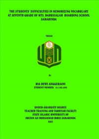 The Students’ Difficulties In Memorizing Vocabulary At Seventh Grade Of MTs. Darussalam Boarding School Samarinda