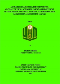 XMLTaupik Hidayat, 2023. An Analysis Grammatical Errors in Writing Abstract of Thesis at English Education Department of State Islamic University of Sultan Aji Muhammad Idris Samarinda in Academic Year 2022/2023. Thesis, English Education Department. Teacher Training and Education Faculty, State Islamic University of Sultan Aji Muhammad Idris Samarinda. Supervisor by Mr. Dr. Bahrani M.Pd as First Advisor, and Mrs. Dra. Siti Hadijah, M.Pd as Second Advisor.