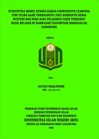 Alfian Maulidnur, 2023. “Efektivitas Model Pembelajaran Cooperative Learning Tipe Teams Game Tournament (TGT) Berbantu Media Mystery Box Pada Mata Pelajaran Fiqih Terhadap Hasil Belajar di Madrasah Tsanawiyah Darussalam Samarinda. Skripsi, jurusan Pendidikan Agama Islam, Fakultas Tarbiyah dan Ilmu Keguruan Univeristas Negeri Islam Sultan Aji Muhammad Idris (UINSI) Samarinda”. Penelitian ini dibimbing oleh Wahdatun Nisa, M.A. sebagai pembimbing I dan Dr. Habib Anwar Al Anshori, M.Pd. sebagai pembimbing II.