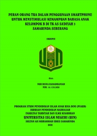 Nur Risna Ramadhaniah., 2022. Peran Orang Tua Dalam Penggunaan Smartphone Untuk Menstimulasi Kemampuan Bahasa Anak Kelompok B TK As Sa’diyah 3 Samarinda Seberang. Program Studi Pendidikan Islam Anak Usia Dini. Fakultas Tarbiyah dan Ilmu Keguruan.UIN Sultan Muhammad Idris Samarinda Di bawah bimbingan Dr. Robingatin, M.Ag sebagai pembimbing 1 dan Lina Revilla Malik, M.Si sebagai pembimbing 2.