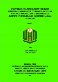 Adhe Nor Ainah, 2023. "Efektivitas Model Pembelajaran Tipe Jigsaw Berbantukan Media Puzzle Terhadap Hasil Belajar Pendidikan Pancasila Dan Kewarganegaraan Madrasah Ibtidaiyah Ma’arif Nahdlatul Ulama 003 Samarinda". Skripsi, Program Studi Pendidikan Guru Madrasah Ibtidaiyah, Jurusan Pendidikan Madrasah, Fakultas Tarbiyah dan Ilmu Keguruan, Universitas Islam Negeri Sultan Aji Muhammad Idris Samarinda. Penelitian ini dibimbing oleh Abdul Razak, M. Pd selaku pembimbing I dan Maulida Ulfa Hidayah, M. Pd selaku pembimbing II.