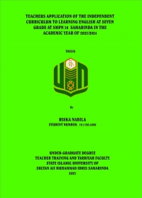 XMLRiska Nabila, 2023. “Teacher’s application of the Independent Curriculum to Learning English at Seven Grade at SMPN 36 Samarinda in the Academic Year of 2023/2024”. Thesis, English Department, Teacher Training and Education Faculty, State Islamic University Sultan Aji Muhammad Idris Samarinda. This research is under guidance of Mrs. Dina Destari, S, S.M.Pd as a first advisor and Mrs. Dini Irawati, M.Pd as a second advisor.
