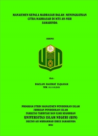Djaelani Rachmat Elqassam. 2024. “Manajemen Kepala Madrasah dalam Meningkatkan Citra Madrasah di MTs An-Nur Samarinda”. Program Studi Manajemen Pendidikan Islam. Fakultas Tarbiyah dan Ilmu Keguruan, Universitas Islam Negeri Sultan Aji Muhammad Idris Samarinda. Penulis Skripsi dibimbing oleh Dra. Hj. Ananiah. M, M.Pd selaku pembimbing I dan Drs. H. Imam Mohtar, M.Pd selaku pembimbing II. Latar belakang penelitian ini membahas tentang “Manajemen Kepala Madrasah dalam Meningkat Citra di MTs An-Nur Samarinda”. Citra merupakan aset berharga yang dipersepsikan oleh publik dapat memberikan dampak luas bagi pendidikan, MTs An-Nur merupakan lembaga pendidikan formal yang berciri khas pesantren pada umunya, madrasah melakukan kegiatan program yang berfokus formal kurikulum pendidikan dan pendidikan Islam dalam meraih prestasi, dan berupaya meningkatkan kualitas madrasah dari kendala madrasah seperti finansial, fasilitas dan krisis covid-19 sehingga perlu pengelolaan yang tepat dalam meningkatkan citra madrasah pada rangkaian fungsi manajemen kepala madrasah, serta apa saja faktor pendukung dan penghambat yang dihadapi. Penelitian ini bertujuan untuk mendeskripsikan tentang manajemen kepala madrasah dalam meningkatkan citra madrasah dan apa saja faktor pendukung dan penghambat dilakukan kepala MTs An-Nur Samarinda. Jenis penelitian adalah kualitatif yang menjadi informan yaitu kepala madrasah, waka kurikulum, waka kesiswaan, tim media dan humas, bendahara, dan kepala tata usaha. Metode yang digunakan dalam penelitian adalah observasi, wawancara, dan dokumentasi. Teknik analisis data menggunakan model interaktif Miles dan Huberman yaitu pengumpulan data, kondensasi data, penyajian data, dan kesimpulan. Hasil penelitian manajemen kepala madrasah dalam meningkatkan citra madrasah di MTs An-Nur Samarinda yaitu, melakukan peninjauan dan menyusun perencanaan serasi dengan visi misi madrasah. Kemudian pengorganisasian di madrasah sudah terorganisir sesuai bidang keahliannya. Kemudian pelaksanaan sudah berjalan semestinya dengan memotivasi secara langsung dan memberikan apresiasi dengan pencapaian prestasi pendidik, tenaga kependidikan, dan peserta didik, juga pelibatan aktif kegiatan pendidikan, ekstrakurikuler, dan masyarakat. Kemudian pengawasan kesehariannya memperhatikan absensi kehadiran pendidik, tenaga kependidikan, peserta didik, dan turun langsung kelapangan melihat kondisi untuk mencatat letak kekurangan yang menjadi bahan evaluasi pada rapat evaluasi mingguan para staff mengenai perencanaan yang sudah dijalankan. Faktor pendukung seperti tekad kuat kepala madrasah menjalankan fungsi manajerial, transparansi, dan akuntabilitas. Memperkuat kesolidan tim agar harmonis dalam pencapaian tujuan, mempertahankan budaya dan karakter sebagai ciri khas berbasiskan pesantren pendidikan keagamaan, dan ekstrakurikuler yang aktif dalam pencapaian prestasi madrasah. Faktor penghambat terbatasnya pendanaan dan kurangnya ruang kelas serta asrama putra yang terus diupayakan dengan melakukan penawaran para donatur untuk mengoptimalkan kinerja pendanaan sehingga bisa melakukan penambahan gedung secara bertahap.