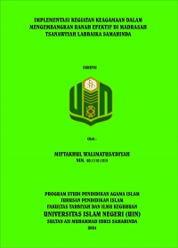 XMLMiftakhul Walimatusa’diyah, 2024. “Implementasi Kegiatan Keagamaan Dalam Mengembangkan Ranah Afektif di MTs Labbaika Samarinda”. Skripsi, Program Studi Pendidikana Agama Islam, Jurusan Pendidikan Islam, Fakultas Tarabiyah dan Ilmu Keguruan, Universitas Islam Negeri Sultan Aji Muhammad Idris (UINSI) Samarinda. Penelitian ini dibimbing oleh Bapak, Prof. Dr. Zurqoni, M.Ag dan Bapak H. Susanto, Lc, M.Pd.I. Latar belakang penelitian ini adalah MTs Labaika Samarinda menerapkan sebuah kegiatan keagamaan dalam memberikan pemahaman agama dan membentuk kepribadian. Pada kegiatan ini salah satu aspek yang paling ditekankan ialah pada pemahaman tentang wawasan ilmu pengetahuan agama mengenai (tahfidz) cara menghafal alqur’an dan (qiro’ati) cara membaca alquran dengan baik dan benar, memahami ajaran agama melalui kegiatan ( majelis ta’lim) kajian dan melakukan kegiatan (jumat berbagi) dalam rangka membantu masyarakat yang membutuhkan. Diharapkan nantinya apabila seorang siswa tamat harus mempunyai hafalan yang ia bawa minimal hafal tiga jus, kemudian sudah lancar dalam membaca Al-Qur’an, memiliki wawasan agama dan sikap yang baik agar bisa menjadi bekal untuk mereka ketika mereka sudah lulus atau keluar dari lingkungan madrasah. Oleh karena itu perlu adanya implementasi kegiatan keagamaan dalam mengembangkan ranah afektif, serta untuk mengetahui faktor pendukung dan penghambat kegiatan keagamaan di madrasah dalam mengembangkan ranah afektif. Jenis penelitian yang digunakan pada penelitian ini adalah penelitian deskriptif dengan pendekatan kualitatif. Teknik pengumpulan data yang digunakan yaitu observasi, wawancara, dan dokumentasi. Data yang terkumpul melalui tiga teknik tersebut kemudian diperiksa keabsahannya dengan validasi kontekstual yang mengunakan teknik triangulasi sumber. Teknik analisis data yang digunakan yaitu dengan tahap kondensasi data, penyajian data dan penarikan kesimpulan. Hasil yang diperoleh dari penelitian ini adalah implemetasi kegiatan keagamaann dalam mengembangkan ranah afektif di MTs Labbaika Samarinda Menggunakan metode pembiasaan yaitu 1.)Membiasakan diri untuk mengikuti kegiatan keagamaan. Tahapan melatih hingga peserta didik benar-benar memahami apa yang seharusnya dilakukan dan bisa mengamalkannya. Memberikan apresiasi pada peserta didik yang berhasil melakukan sikap atau perilaku yang positif dan selalu memberikan motivasi untuk mereka menunjukkan semangat yang tinggi dalam mengejar kebaikan dan yang terpenting implementasi nilai-nilai Islam seperti sikap religius, sikap spiritual dan sikap sosial dalam kegiatan tersebut, termasuk pemahaman fiqh, tauhid, dan akidah, yang semuanya didapatkan dari kegiatan-kegiatan keagamaan tersebut. Proses ini dimulai melalui pembiasaan yang baik. 2.)Adapun faktor pendukung dari implementasi kegiatan keagamaan tersebut yaitu lingkungan sekitar yang mendukung, bimbingan yang baik dari guru, pemberian motivasi dalam bentuk rewards. Sedangkan faktor penghambatnya yaitu faktor keluarga perbedaan pengajaran di rumah dan disekolah, kemudian karakter dan minat peserta didik.