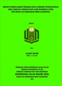 XMLSlamet Riyadi, 2024. Proses Pembelajaran Program Kelas Khusus Internasioanl (KKI) Fakultas Tarbiyah dan Ilmu Keguruan (FTIK) Universitas Islam Negeri Sultan Aji Muhammad Idris (UINSI) Samarinda. Program Studi Pendidikan Agama Islam Institut Agama Islam Negeri (IAIN) Samarinda. Penulisan skripsi ini dibawah bimbingan Dr. Siti Julaiha, S.Ag., M.Pd. selaku Pembimbing I dan Imroh Atul Musfiroh, M.Pd.I sela ku Pembimbing II. Latar belakang penelitian ini adalah Kelas Khsusus Internasional (KKI) Fakultas Tarbiyah dan Ilmu Keguruan (FTIK) merupakan salah satu program unggulan yang dimiliki Universias Islam Negeri Sulan Aji Muhammad Idris (UINSI) Samarinda. Program ini dikhususkan kepada mahasiswa program studi Pendidika Aagama Islam (PAI). Program ini berbeda dengan program reguler biasa, mahasiswa yang tergabung dalam program ini dipilih melalui proses seleksi dan juga mendapatkan fasilitas sarana dan prasarana yang berbeda dengan kelas reguler. Berbagai macam kegiatan tambahan dilakukan oleh pihak pengelola demi menciptakakan pembelajaran yang bernuansa internasional. Metode penelitian yang digunakan dalam penelitian ialah pendekatan dekskriptif kualitatif yaitu mendeskripsikan hasil penelitian dalam bentuk narasi atau kata-kata. Penelitian ini merupakan jenis penelitian field research atau penelitian lapangan. Sumber data dalam penelitian ini ialah para pengelola program Kelas Khusus Internasional (KKI) Universias Islam Negeri Sulan Aji Muhammad Idris (UINSI) Samarinda dan beberapa dosen dan mahasiswa. Pengumpulan data dengan teknik wawancara, observasi dan dokumentasi. Teknik analisis data yang digunakan ialah kondensasi data, penyajian data dan verifikasi atau penarikan kesimpulan. Hasil penelitian dapat disimpulkan bahwasanya proses pembelajaran program Kelas Khusus Internasional (KKI) Universias Islam Negeri Sulan Aji Muhammad Idris (UINSI) Samarinda dimana dosen yang mengajar menggunakan berbagai macam metode dalam proses pembelajaran seperti student active learning dan student center learning, diskusi, ceramah, dan ada juga yang mengkolaborasikan berbagai macam metode tersebut. Selain metode, penggunaan media dalam proses pembelajaran juga digunakan dalam proses pembelajan betujuan untuk mempermudah dalam proses pembelajaran, adapun media yang digunakan seperti, LCD, laptop, Google Classroom, Microsoft Power Point, media karton, dan speaker. Kemudian pada proses pembelajaran digunakan model pembelajaran Course Review Horay dan model pembelajaran Snowball Throwing bertujuan agar dalam proses pembelajaran tidak membosankan. Penerapam dari metode, media dan model pembelajaran tetap menyesuaikan dengan materi sarana dan prasarana serta waktu dalam proses pembelajaran. Dalam penerapan metode, media, dan model pembelajaran terdapat faktor pendukung dan penghambat, adapaun faktor pendukungnya yaitu, kondisi mahasiswa, lingkungan kelas, sarana dan prasarana. Sedangkan faktor penghambatnya hampir tidak ada hanya terkendala padasaat penggunaan bahasa asing dalam proses pembelajaran.