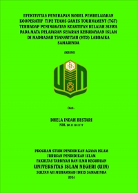 XMLDhela Indah Bestari, 2024. “Efektivitas Penerapan Model Pembelajaran Kooperatif Tipe Teams Games Tournament (TGT) terhadap Peningkatan Keaktifan Belajar Siswa pada Mata Pelajaran Sejarah Kebudayaan Islam di Madrasah Tsanawiyah (MTs) Labbaika Samarinda”. Skripsi, Jurusan Pendidikan Islam Program Studi Pendidikan Agama Islam Fakultas Tarbiyah dan Ilmu Keguruan Universitas Islam Negeri (UIN) Sultan Aji Muhammad Idris Samarinda. Penelitian ini dibimbing oleh Bapak Prof. Dr. Zurqoni, M.Ag sebagai pembimbing I dan Ibu Anggie Nadia Dinihari, M.Pd sebagai pembimbing II. Latar belakang penelitian yakni siswa yang kurang aktif ketika melaksanakan kegiatan pembelajaran Sejarah Kebudayaan Islam, guru hanya menjelaskan pembelajaran tanpa adanya variasi metode pembelajaran. Metode pembelajaran yang sering diterapkan oleh guru yaitu metode ceramah, presentasi tanpa tanya jawab antar siswa dan menonton video yang berkaitan dengan materi. Akibatnya, siswa terlihat kurang aktif dan suasana kelas terlihat membosankan. Penelitian ini bertujuan guna mengetahui perbedaan yang signifikan keaktifan belajar siswa antara kelompok yang menerapkan model pembelajaran kooperatif tipe Teams Games Tournament (TGT) dan kelompok yang menerapkan metode konvensional pada mata pelajaran Sejarah Kebudayaan Islam di Madrasah Tsanawiyah (MTs) Labbaika Samarinda. Penelitian ini merupakan penelitian kuantitatif dengan jenis desain yang digunakan ialah kuasi eksperimen dengan nonequivalent control group design. Desain ini terdapat dua kelompok yaitu kelompok eksperimen dan kontrol menggunakan angket pretest dan posttest. Teknik pengumpulan yang digunakan yaitu observasi, wawancara, angket, dan dokumentasi. Teknik analisis data menggunakan analisis non parametrik yaitu uji Mann Whitney untuk pengujian hipotesis. Adapun teknik pengambilan sampel yang digunakan adalah purposive sampling yakni kelas VII A dan VII D MTs Labbaika Samarinda yang berjumlah 78 siswa. Kelas VII A sebagai kelompok eksperimen sedangkan kelas VII D sebagai kelompok kontrol. Berdasarkan hasil analisis deskriptif diperoleh nilai minimum pre-test kelompok eksperimen adalah 35, nilai maksimumnya adalah 67 dan mean 53.80. Pada data post-test kelompok eksperimen nilai minimumnya adalah 44, nilai maksimumnya adalah 68 dan mean 56.63. Pada data pre-test kelompok kontrol diperoleh nilai minimumnya ialah 35, nilai maksimumnya adalah 66 dan mean 53.11 sedangkan pada data post-test kelas kontrol diperoleh nilai minimumnya adalah 37, nilai maksimumnya adalah 67 dan mean 51.92. Melalui hasil analisis uji hipotesis pada hasil data post-test antara kelompok eksperimen dan kelompok kontrol dengan uji Mann Whitney U Test didapatkan nilai signifikansi sebesar 0,029 < 0,05. Dari hasil analisis tersebut menunjukkan bahwa terdapat perbedaan yang signifikan keaktifan belajar siswa antara kelas eksperiman yang menerapkan model pembelajaran kooperatif tipe Teams Games Tournament (TGT) dan kelas kontrol yang menerapkan metode konvensional. Dapat diambil kesimpulan bahwa model pembelajaran koopeartif tipe Teams Games Tournament (TGT) efektif dalam meningkatkan keaktifan belajar siswa.