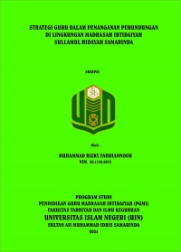 XMLMuhammad Rizky Fahriannoor, 2024. “Strategi Guru dalam Penanganan Perundungan di Lingkungan Madrasah Ibtidaiyah Sullamul Hidayah Samarinda”. Skripsi. Program Studi Pendidikan Guru Madrasah Ibtidaiyah, Fakultas Tarbiyah dan Ilmu Keguruan. Penelitian ini dibimbing oleh Ibu Dr. Hj. Robingatin, M.Ag Dan Ibu Lely Salmitha, M.Pd. Penelitian ini dilatar belakangi oleh siswa yang melakukan tindakan perundungan terhadap teman sejawatnya. Penelitian ini dilakukan pada pihak sekolah seperti guru dan siswa yang ada di Lingkungan Madrasah Ibtidaiyah Sullamul Hidayah Samarinda, yang meninjau bentuk-bentuk perundungan dan strategi guru dalam menangani kasus perundungan yang terjadi di lingkungan Madrasah Ibtidaiyah Sullamul Hidayah. Adapun bentuk perundungan yang kerap terjadi di Madrasah ini yaitu, bentuk perundungan melalui fisik, bentuk perundungan verbal, dan bentuk perundungan non verbal. Strategi yang diterapkan oleh kepala sekolah dan guru kelas II, III, dan IV seperti memberikan himbauan, melakukan pendekatan, menerapkan siraman rohani, dan memberikan hukuman kepada siswa yang melanggar aturan sekolah. Guru memiliki peran yang sangat penting dalam menangani perundungan dan menciptakan lingkungan yang aman bagi semua siswa. Penelitian ini bertujuan untuk mengeskplorasi strategi yang digunakan oleh guru dalam menangani perundungan di lingkungan Madrasah Ibtidaiyah Sullamul Hidayah Samarinda. Penelitian ini merupakan jenis kualitatif dengan pendekatan deskriptif. Pengumpulan data-data diperoleh dari observasi, wawancara secara mendalam, dan dokumentasi. Informan penelitian ini adalah kepala sekolah, guru kelas, dan siswa, adapun uji keabsahan data melalui triangulasi tekhnik, triangulasi sumber. Analisis data menggunakan langkah-langkah reduksi data, penyajian data dan verifikasi data atau penarikan kesimpulan. Hasil penelitian ini menunjukan bahwa adanya kasus perundungan yang terjadi di lingkungan Madrasah Ibtidaiyah Sullamul Hidayah Samarinda dalam bentuk perundungan fisik, verbal, dan non verbal. Strategi yang diterpakan oleh guru dalam menangani perundungan tersebut adalah memberikan kesadaran kepada siswa mengenai dampak perundungan melalu himbauan dan nasehat, memberikan pendekatan khusus kepada peserta didik, menambahkan siraman rohani sebelum jam pembelajaran dimulai, dan yang terakhir memberikan punishment atau hukuman kepada peserta didik yang sering melanggar aturan aturan yang telah ditetapkan oleh pihak sekolah. Strategi yang diterapkan oleh kepala sekolah dan guru kelas merupakan salah satu bentuk keberhasilan dalam menjaga lingkungan yang damai dan positif pada proses pembelajaran siswa di sekolah. Oleh karena itu, Madrasah Ibtidaiyah Sullamul Hidayah Samarinda diharapkan bisa menjadi refrensi dalam menangani kasus perundungan yang dilakukan pada siswa untuk sekolah lain.