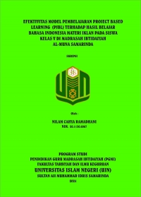 XMLNilam Cahya Ramadhani, 2024 “Efektivitas Model Pembelajaran Project Based Learning Terhadap Hasil Belajar Siswa Mata Pelajaran Bahasa Indonesia pada Materi Iklan di Madrasah Ibtidaiyah Al-Muna Samarinda”,Skripsi. Program Studi Pendidikan Guru Madrasah Ibtidaiyah. Jurusan Pendidikan Madrasah, Fakultas Tarbiyah dan Ilmu Keguruan. Universitas Islam Negeri Sultan Aji Muhammad Idris Samarinda. Penelitian ini di bimbing oleh Ibu Juhairiah, M.Pd dan Ibu Siti Nasiah, M.Pd. Penelitian ini dilatar belakangi karena sebuah kondisi yang tidak stabil dalam sebuah proses pembelajaran apalagi terhadap mata pelajaran Bahasa Indonesia pada materi Iklan, yang mana siswa cendrung merasa bosan yang menyebabkan hasil belajar siswa tidak memperoleh nilai KKM. Oleh karena itu perubahan pada sistem pendidikan dan pengajaran diperlukan. Untuk dapat memperoleh peningkatkan hasil belajar maka pendidik harus berupaya mencoba penggunaan model pembelajaran untuk meningkatkan hasil belajar siswa. Metode pembelajaran yang diterapkan dalam penelitian ini yaitu model pembelajaran Project Based Learning yang memiliki keunggulan meningkatkan kemampuan pemecahan masalah, kolaborasi dan pengalaman belajar yang menyenangkan. Tujuan dari penelitian ini adalah untuk mengetahui Efektivitas Model Pembelajaran Project Based Learning (PjBL) Terhadap Hasil Belajar Bahasa Indonesia Materi Iklan pada Siswa Kelas V di Madrasah Ibtidaiyah Al-Muna Samarinda. Metode penelitian ini adalah pendekatan kuantitatif dengan jenis penelitian yaitu quasi eksperiment design. Desain penelitiannya yaitu bentuk Pre-Test and Post-Test Control Group Design. Desain ini merupakan eksperimen yang dilakukan pada dua kelas, yaitu satu kelas VA sebagai eksperimen dan kelas VB sebagai kelas kontrol. Analisis data yang digunakan yaitu melalui uji prasyarat (normalitas dan homogenitas) serta uji hipotesis dan uji n-gain score. Pada penelitian ini menyimpulkan bahwa nilai siswa pretest antara kelas VA dan kelas VB yang di uji dengan soal yang mempunyai indikator hasil belajar materi iklan, masing-masing mempunyai rata-rata 63,59 dan 60,20. Sedangkan hasil belajar setelah di laksanakan penelitian menyatakan bahwa siswa Kelas Eksperimen yang menggunakan Model Pembelajaran Project Based Learning, mendapat nilai dengan rata-rata 86,11 dan Kelas kontrol mendapat nilai dengan rata-rata 63,80. Artinya ada perbedaan secara signifikan antara kelas yang di beri treatment dengan kelas biasa terhadap hasil belajar siswa pada materi iklan di mata pelajran Bahasa Indonesia. Hal ini juga diperkuat dengan analisis data menggunakan uji N-gain score menunjukkan nilai kelas eksperimen adalah 67% masuk kategori cukup efektif, sedangkan kelas kontrol 20%, jadi bisa di simpulkan bahwa bahwasanya model pembelajaran Project Based Learning cukup efektif digunakan dalam pembelajaran Bahasa Indonesia materi iklan kelas V di Madrasah Ibtidaiyah Al-Muna Samarinda.