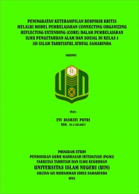 XMLEvi Diawati Putri, 2024. “Peningkatkan Keterampilan Berpikir Kritis melalui Model Pembelajaran Connecting Organizing Reflecting Extending (CORE) dalam Mata Pelajaran Ilmu Pengetahuan Alam dan Sosial di Kelas 5 SD Islam Tarbiyatul Athfal Samarinda. Skripsi, Program Studi Pendidikan Guru Madrasah Ibtidaiyah, Fakultas Tarbiyah dan Ilmu Keguruan Universitas Islam Negeri Sultan Aji Muhammad Idris (UINSI) Samarinda”. Penelitian ini dibimbing oleh Wildan Saugi, M.Pd. sebagai pembimbing I, dan Istifatun Zaka, S.S., M.A. sebagai pembimbing II. Latar belakang dalam penelitian ini adalah persoalan yang masih terjadi dalam pembelajaran IPS di Kelas 5 SD Islam Tarbiyatul Athfal menarik perhatian peneliti melalui observasi awal ke beberapa anak dan wawancara dengan kepala sekolah, teman sejawat guru dan beberapa anak kelas 5 memperoleh informasi bahwa tingkat pembelajaran keterampilan berpikir kritis di kelas masih rendah. Pada wawancara peneliti kepada kepala sekolah dan teman sejawat guru menunjukkan bahwasannya pembelajaran sebagian besar guru-guru masih menerapkan pembelajaran bersifat berpusat pada guru (teacher centered) yang dapat ditelaah peneliti yang menyebabkan masih rendahnya keterampilan berpikir kritis pada siswa kelas 5. Adapun observasi yang dilakukan peneliti kepada kelas 5 angkatan tahun 2022/2023 menunjukkan hanya 33,3%, dari 18 siswa hanya 6 siswa yang nilainya mencapai KKM dan menunjukkan dapat berpikir kritis dengan indikator yang ingin dicapai yaitu bisa menjelaskan secara sederhana, bisa membangun keterampilan dasar dengan menyimpulkan dan memperluas penjelasan dengan alasan yang kritis serta mampu mengatur cara bepikir kritis dalam pembelajaran di kelas. Tujuan dari penelitian ini adalah untuk meningkatkan keterampilan berpikir kritis pada siswa pada materi daerah kebanggaanku. Jenis penelitian ini adalah Penelitian Tindakan Kelas (PTK), dengan subjek penelitian siswa kelas 5 yang berjumlah 18 siswa. Penelitian ini menggunakan model Arikunto yang meliputi perencanaan, pelaksanaan tindakan, pengamatan, dan refleksi. Penelitian ini dilakukan dalam dua siklus dengan masing-masing siklus terdiri atas dua pertemuan. Teknik pengumpulan data menggunakan lembar kerja peserta didik, hasil tes tiap akhir siklus, lembar observasi lembar perbandingan nilai siswa, lembar ketuntasan dan dokumentasi. Analisis data menggunakan analisis data kuantitatif dan kualitatif. Hasil penelitian menunjukkan adanya peningkatan keterampilan berpikir kritis siswa jika dibandingkan pada pra siklus hanya sebesar 57 dengan ketuntasan belajar hanya mencapai 33% setelah diberi tindakan nilai rata-rata siswa pada siklus I sebesar 72 dengan ketuntasan belajar mencapai 50%. Selanjutnya, pada siklus II nilai rata-rata mencapai 85 dengan ketuntasan belajar mencapai 89% dan dapat dikatakan meningkat karena mengalami perubahan dan hasil akhirnya melebihi kriteria ketuntasan minimal yang ditetapkan yaitu 75 dengan presentase 81% dan dapat dikatakan model pembelajaran Connecting Organizing Reflecting Extending (CORE) dapat meningkatkan Keterampilan Berpikir Kritis dalam Mata Pelajaran Ilmu Pengetahuan Alam dan Sosial di Kelas 5 SD Islam Tarbiyatul Athfal Samarinda.