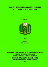 XMLABSTRAK. Suandi, 2024, “Analisis Kemandirian Anak Usia 5-6 Tahun di TK Islamic Center Samarinda”. Skripsi, Program Studi Pendidikan Islam Anak Usia Dini, Jurusan Pendidikan Madrasah, Fakultas Tarbiyah dan Ilmu Keguruan, Universitas Islam Negeri Sultan Aji Muhammad Idris Samarinda. Penelitian ini dibimbing oleh Ibu Marniati Kadir, M.Pd. selaku pembimbing I dan Ibu Nurwati, M.Pd. selaku pembimbing II. Latar belakang penelitian ini adalah kemandirian menjadi penting bagi anak usia dini agar mampu menjalani kehidupan tanpa bergantung kepada orang lain. Mandiri dalam mempersiapkan diri anak untuk menjalani masa depan untuk membentuk anak menjadi pribadi yang berkualitas serta membuat anak mampu bergaul dengan orang lain.. Penelitian ini bertujuan untuk mengetahui Analisis kemandirian anak usia 5-6 tahun di TK Islamic Center Samarinda. Jenis penelitian ini menggunakan metode deskriptif kuantitatif. Sumber data yang digunakan yaitu sumber data primer dan sekunder. Teknik pengumpulan data yang digunakan yaitu observasi, wawancara dan dokumentasi. Teknik keabsahan data yang digunakan dalam penelitian ini adalah persentase. Hasil penelitian menunjukkan bahwa tingkat kemandirian anak usia dini (5-6 tahun) di TK Islamic Center, dilihat dari tingkat kemandirian anak usia dini (5-6 tahun) dilihat dari tingkat percaya diri anak terletak pada kategori Berkembang Sesuai Harapan (BSH) yakni 19 anak dengan persentase sebesar (82%) dari keseluruhan sampel penelitian di kelas KH. Abul Hasan sedangkan di kelas KH. Abdul Rasyid terletak pada kategori Berkembang Sesuai Harapan (BSH) yakni 17 anak dengan persentase sebesar (73,9%) dari keseluruhan sample penelitian. Dilihat dari indikator tanggung jawab, terletak pada kategori Berkembang Sesuai Harapan (BSH) yakni 12 anak dengan persentase sebesar (52,1%) dari keseluruhan sampel penelitian di kelas KH. Abul Hasan sedangkan di kelas KH. Abdul Rasyid terletak pada kategori Berkembang Sesuai Harapan (BSH) yakni 12 anak dengan persentase sebesar (52,1%) dari keseluruhan sample penelitian. Tingkat kemandirian anak usia dini dilihat dari indikator disiplin, terletak pada kategori Berkembang Sesuai Harapan (BSH) yakni 14 anak dengan persentase sebesar (60,8%) dari keseluruhan sampel penelitian di kelas KH. Abul Hasan sedangkan di kelas KH. Abdul Rasyid terletak pada kategori Berkembang Sesuai Harapan (BSH) yakni 11 anak dengan persentase sebesar (47,8%) dari keseluruhan sample penelitian. Serta secara global berdasarkan hasil penelitian diketahui bahwa kemandirian anak usia dini (usia 5-6 tahun) di TK Islamic Center Samarinda sebesar 46% dan termasuk pada kategori Berkembang Sesuai Harapan (BSH).