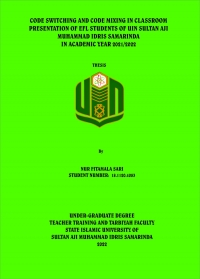 XMLNur Fitamala Sari. 2022. Code Switching and Code Mixing in Classroom Presentation of EFL Students of UIN Sultan Aji Muhammad Idris Samarinda in Academic Year 2021/2022. Thesis, English Education Department, Teacher Training and Tarbiyah Faculty, State Islamic University Sultan Aji Muhammad Idris Samarinda. This research is under the guidance of Mr. Umar Fauzan, M. Pd., as the first advisor and Mrs. Nadia Sya’ya, M. Pd., M. TESOL., as the second advisor.