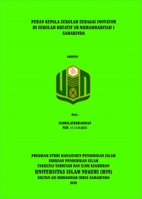 Fadhilaturrahman, 2022. “Peran Kepala Sekolah Sebagai Inovator di Sekolah Kreatif SD Muhammadiya 3 Samarinda”. Skripsi, Jurusan Pendidikan Islam Program Studi Manajemen Pendidikan Islam Fakultas Tarbiyah dan Ilmu Keguruan (FTIK) Universitas Islam Negeri Sultan Aji Muhammad Idris (UINSI) Samarinda. Penelitian ini dibimbing oleh Dr. Siti Julaiha, S.Ag, M.Pd dan Dr. Siti Nor Asiah, SE, M.Pd.