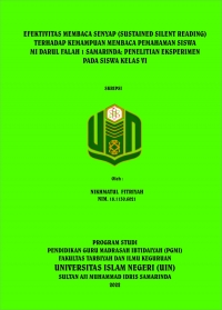 Penelitian ini dilatar belakangi dengan adanya kemampuan membaca pemahaman siswa yang masih kurang dalam memahami suatu bacaan terutama pada kelas VI, guru masih menggunakan pembelajaran yang konvensional. Sehingga peneliti menggunakan metode membaca senyap (sustained silent reading) untuk dapat melihat kemampuan membaca pemahaman. Selain itu, kemampuan membaca pemahaman ini juga terkait dengan kebiasaan siswa dalam membaca senyap seperti 15 menit sebelum memulai pelajaran siswa diharapkan untuk dapat membaca. Sehingga penggunaan metode membaca senyap (sustained silent reading) diduga efektif terhadap kemampuan membaca pemahaman. Penelitian ini bertujuan untuk mengetahui Efektivitas Membaca Senyap (Sustained Silent Reading) Terhadap Kemampuan Membaca Pemahaman Siswa MI Darul Falah 1 Samarinda.
