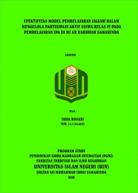 Pendidikan menjadi salah satu aspek kehidupan yang sangat mendasar bagi pembangunan bangsa suatu negara. Dengan pendidikan, diharapkan agar dapat mengembangkan potensi diri yang dimiliki manusia baik sebagai individu maupun sebagai makhluk sosial. Partisipasi aktif siswa dalam belajar merupakan persoalan mendasar yang harus dipahami, disadari, dan dikembangkan oleh setiap guru di dalam proses pembelajaran. Adapun faktor pendukung untuk mencapai tujuan tersebut salah satunya adalah menentukan model pembelajaran yang sesuai. Salah satu model alternatif yang dapat diterapkan dalam pembelajaran ialah model pembelajaran kooperatif tipe jigsaw. Tipe pembelajaran kooperatif ini dianggap cocok dalam upaya meningkatkan dan mempertahankan partisipasi aktif siswa. Model pembelajaran ini sangat berguna untuk membantu siswa menumbuhkan kemampuan kerja sama, berpikir kritis dan kemampuan membantu teman. Pembelajaran ini akan menciptakan siswa untuk berpartisipasi dan ikut serta secara aktif sehingga antar siswa akan berfikir bersama, berdiskusi bersama, melakukan penyelidikan bersama dan berbuat ke arah yang sama. Tujuan dari penelitian ini ialah untuk mengetahui efektifitas model pembelajaran jigsaw dalam mengelola partisipasi aktif siswa kelas IV MI Ar Raudhah Samarinda.