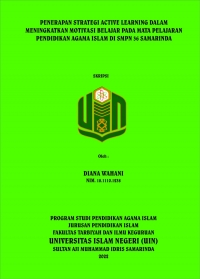 XMLDiana Wahani, 2022. “Penerapan Strategi Active Learning Dalam Meningkatkan Motivasi Belajar Siswa Pada Mata Pelajaran Pendidikan Agama Islam Di SMPN 36 Samarinda”. Skripsi. Program Studi Pendidikan Agama Islam Fakultas Tarbiyah dan Ilmu Keguruan Universitas Islam Negeri Sultan Aji Muhammad Idris Samarinda. Penelitian ini dibimbing oleh Bapak Dr. Husni Idris, M. Pd sebagai dosen pembimbing I dan Ibu Yunita Noor Azizah, M. Pd.I sebagai dosen pembimbing II.