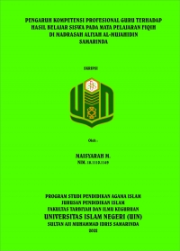 Skripsi ini dilatar belakangi bahwa seorang guru yang memiliki kompetensi profesional disyaratkan memiliki kemampuan penguasaan terhadap bahan ajar, mengelola kelas dan mengelola interaksi belajar mengajar serta menilai hasil belajar siswa. Dengan demikian kompetensi profesional guru sangat berpengaruh terhadap hasil belajar siswa. Tujuan penelitian ini adalah untuk mengetahui seberapa besar pengaruh kompetensi profesional guru terhadap hasil belajar siswa pada mata pelajaran fiqih di Madrasah Aliyah Al-Mujahidin Samarinda.