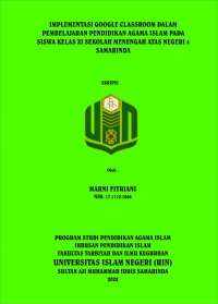 XMLMarni Fitriani, “Implementasi Google Classroom Dalam Pembelajaran Pendidikan Agama Islam Pada Siswa Kelas XI Sekolah Menengah Atas Negeri 4 Samarinda, 2022. Skripsi, Program Studi Pendidikan Agama Islam, Jurusan Pendidikan Islam, Fakultas Tarbiyah dan Ilmu Keguruan, Universitas Islam Negeri Sultan Aji Muhammad Idris Samarinda”. Penelitiani ini dibimbing oleh Ibu Marniati Kadir, M.Pd sebagai pembimbing I dan Ibu Rega Armella, M.Pd sebagai pembimbing II.