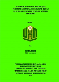 Yovita Reski, 2022. Pengaruh Penerapan Metode Iqra‟ Terhadap Kemampuan Membaca Al-Qur‟an di SMP 3 Negeri Samarinda. Skripsi, Program Studi Pendidikan Agama Islam, Jurusan Pendidikan Islam, Fakultas Tarbiyah Dan Ilmu Keguruan, Universitas Islam Negeri Sultan Aji Muhammad Idris Samarinda. Penelitian ini dibimbing oleh Bapak Dr. Iskandar, M. Ag. sebagai pembimbing I dan Ibu Imroh Atul Musfiroh, M. Pd. I sebagai pembimbing II.