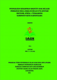 XMLLestari, 2021, “Peningkatan kemampuan kognitif melalui permainan bola angka di Kelas B Tk Aisyiyah Bustanul Athfal 3 Tenggarong Kabupaten Kutai Kartanegara”skripsi Program Studi Pendidikan Islam Anak Usia Dini, Jurusan Pendidikan Madrasah, Fakultas Tarbiyah dan Ilmu Keguruan, Institut Agama Islam Negeri (IAIN) Samarinda. Penelitian ini di bawah bimbingan Dra. Hj. Ananiah, M. M. Pd dan Dr. Siti Nor Asiah, M. Pd.