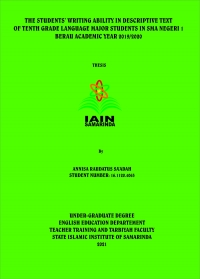 English in Indonesia is a foreign language that should be learned and mastered by students. Education is a process of fundamental skills intellectual and emotional. The aim of education is to improve the quality of students in Indonesia, especially in writing. There are so many ways conducted by educational institution in improving students English quality in Indonesia. One of the institutions is SMA Negeri 1 Berau. Based on research conducted the researcher found that in SMAN Negeri 1 Berau has a language major program. The objective of this research is to know the students’ writing ability in descriptive text and their problems in writing of tenth grade language major students.