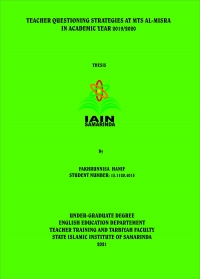 Fakhrunnisa Hanif. 2021. "Teacher Question Strategies at MTs. Al-Misra Samarinda in the 2019/2020 Academic Year". S1 Thesis, Study Program of English Education, Faculty of Teacher Training and Education, State Islamic University of Sultan Aji Muhammad Idris Samarinda. Advised by Dr. Bahrani, M.Pd as the first advisor and Rostanti Toba, M. Pd as the second advisor.