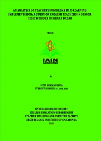 XMLSitti Nurmanihaya, 2021. “An Analysis of Teacher’s Problems in E-Learning Implementation (A Study on English Teachers in Senior High Schools in Muara Badak)”. Thesis, English Education Department, Teacher Training and Tarbiyah Faculty, State Islamic University Sultan Aji Muhammad Idris. This research was supervised by Mrs. Dina Destari, S.S, M.Pd as the first supervisor and Mrs. Rostanti Toba, M.Pd as the second supervisor.