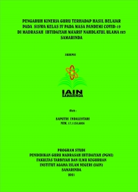 Saputri Indalestari, 2021. “Pengaruh Kinerja Guru terhadap Hasil Belajar Siswa Kelas IV pada Masa Pandemi Covid-19 di Madrasah Ibtidaiyah Ma’arif Nahdlatul Ulama 003 Samarinda”.Penelitian ini dibimbing oleh Ibu Marniati Kadir, M.Pd selaku dosen pembimbing I dan Ibu Amalia Nur Aini, M.Pd selaku dosen pembimbing II.