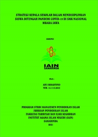Latar belakang penelitian ini adalah sebelum adanya covid-19, SMK Nasional merupakan sekolah yang memiliki tata tertib kedisiplinan yang baik, hal ini dibuktikan dengan hasil observasi peneliti di lapangan yang menunjukkan kedisiplinan siswa terhadap tata tertib sekolah berjalan dengan baik. Kemudian, ketika pemerintah mengeluarkan kebijakan kepada seluruh lembaga sekolah di Indonesia untuk melaksanakan kegiatan sekolah secara online maka ada strategi yang berbeda dari kepala sekolah sendiri. Hal ini tentu saja berpengaruh dengan kedisiplinan siswa. Kepala sekolah sebagai pemimpin di suatu lembaga sekolah di tuntut untuk bisa mencari strategi yang dapat menjadikan siswa tetap disiplin meskipun seluruh kegiatan sekolah dilakukan secara online. Maka dari itu tujuan dari penelitian ini adalah untuk mengetahui strategi yang dilakukan kepala sekolah dalam mendisiplinkan siswa ditengah pandemi covid-19 dan untuk mengetahui faktor yang mempengaruhi kedisiplinan siswa ditengah pandemic covid-19 di SMK Nasional Muara Jawa.