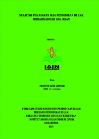 XMLPrastyo Adhi Jatmiko, 2021. “Strategi Pemasaran Jasa Pendidikan di SMK Muhammadiyah Loa Janan”. Program Studi Manajemen Pendidikan Islam. Fakultas Tarbiyah dan Ilmu Keguruan UINSI Samarinda. Penulisan skripsi ini di bawah bimbingan Ibu Dr. Siti Julaiha, S.Ag, M.Pd selaku pembimbing I dan Ibu Arsinah, S.Ag, M.Si selaku pembimbing II.
