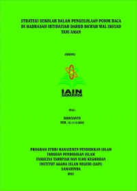XMLRudiyanto. 2020. Strategi Sekolah Dalam Pengelolaan Pojok Baca di Madrasah Ibtidaiyah Darud Da’wah Wal Irsyad. Skripsi. Program Studi Manajemen Pendidika Islam (MPI) Jurusan Pendidikan Islam (PI) Fakultas Tarbiyah dan Ilmu keguruan (FTIK) Institut Agama Islam Negeri (IAIN) Samarinda. Penelitian ini di bawah bimbingan Dr. Zamroni, M.Pd sebagai pembimbing I dan Rumainur, M.Pd.I sebagai pembimbing II.