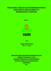 XMLZudha Virnanda Putra, “Peran Kepala Sekolah Dalam Membangun Motivasi Kerja Guru Di Sekolah Kreatif SD Muhammadiyah 3 Samarinda. Skripsi, Samarinda”, 2021. Skripsi, Program Studi Manajemen Pendidikan Islam (MPI), Fakultas Tarbiyah dan Ilmu Keguruan. Universitas Islam Negeri Sultan Aji Muhammad Idris (UINSI) Samarinda. Penulis skripsi ini dibimbingan Dr. Siti Julaiha, S.Ag. M.Pd sebagai pembimbing I dan Fathur Rahman, M.Si sebagai pembimbing II.