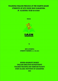 XMLRini Astarina. 2020. “Teaching English Process at the Eighth Grade of MTs Noor Iman Samarinda In Academic Year 2019/2020”.Thesis. Teacher Training and Tarbiyah Faculty. English Education Department. State Islamic Institute of Samarinda. Advisors: Mohamad Muklis, M. Hum as the first advisor and Widya Noviana Noor, M. Pd as the second advisor. This research aims at finding the answer to the following research questions: How is the Teaching English Process at the Eighth Grade of MTs Noor Iman Samarinda In Academic Year 2019/2020. The objective of the research involves some components, namely: curriculum and syllabuses, learning objectives, teaching procedures and technique, teaching process, instructional material and method, and media used for English teaching. This research used descriptive qualitative method. The instrument of research derived from event, documents, and interview. The techniques of collecting the data are observations, interviews, and documentation. The techniques of analyzing are data reduction, data display, and conclusion. The researcher use triangulation as a trustworthiness of data. The result of this research shows that MTs Noor Iman Samarinda has followed the requirements of teaching process including the syllabus, learning objective, procedure and technique, and media for delivering the material. They are: (1) The syllabus applied at MTs Noor Iman Samarinda was Curriculum of 2013 (K-13) (2) The teaching learning process in MTs Noor Iman Samarinda has some general objectives and specific objectives for each English skill. (3) The procedure of teaching implemented the theory of Scientific Approach in teaching English lesson, (4) The teacher used several techniques, group discussion, dialogue performance, question and answer. (5) The instructional materials used at is divided into four categories: printed material, audio material, visual material and material from internet. (6) Related to media, the teacher has used some media or tools such as textbook and whiteboard, LCD, internet and picture. (7) Assessment models by the teacher that there was an individual work, team work, daily test, mid test, and final test. In the form of multiple choice, essays, and matching.